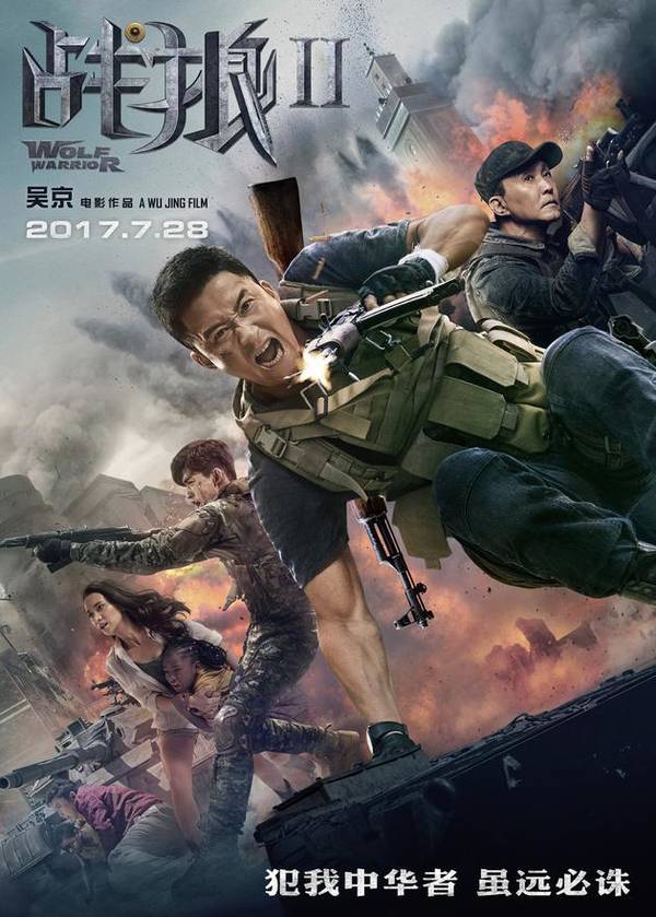 但一部电影的成功讲究天时地利人和,真正让《战狼2》收获成功的,是今天中国的国家实力和国际地位,祖国的强大和繁荣让主人公开挂的情节也显得合理化。值得一提的是,《战狼2》的宣传语有一句是“犯我中华者,虽远必诛”,影片中吴京扮演的硬汉前军人在面对境外反叛势力挑衅“中国人天生是失败者”时也怒斥“那他妈是以前”。显然,影片借人物之口以最直白的方式为观众找到了情绪点,在各种意义上,属于中国的时代正在来临。